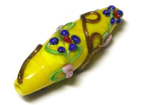 ◇高級手作りトンボ玉◇ナツメ型 花 イエロー 1粒 06-1266