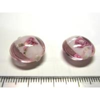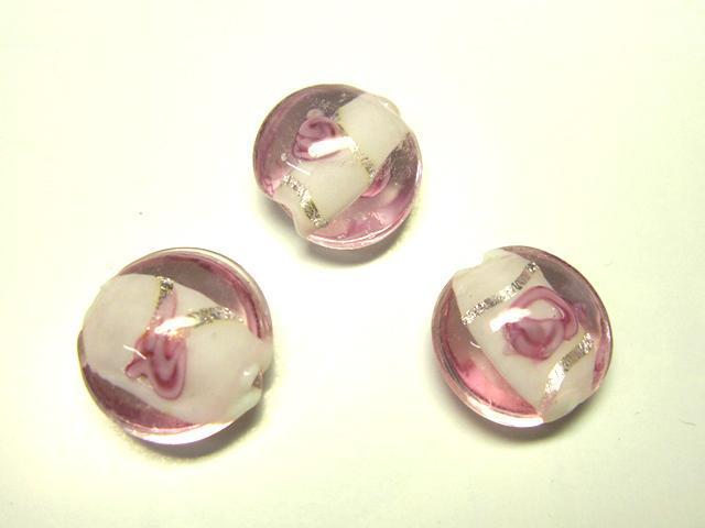 ◆トンボ玉連◆円盤 花模様 ピンク 約15mm 19粒 06-1318