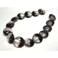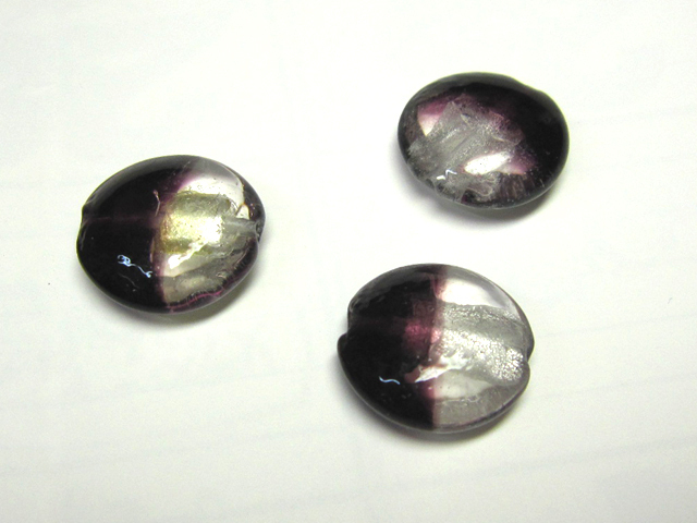 ◆トンボ玉連◆円盤 箔 バイカラー 紫&クリア 約20mm 14粒 06-1379