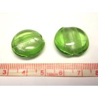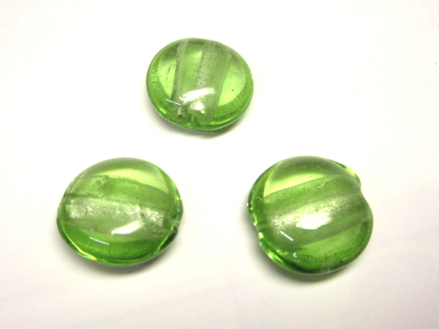 ◆トンボ玉連◆円盤 箔 シンプル クリアグリーン 約20mm 14粒 06-1383