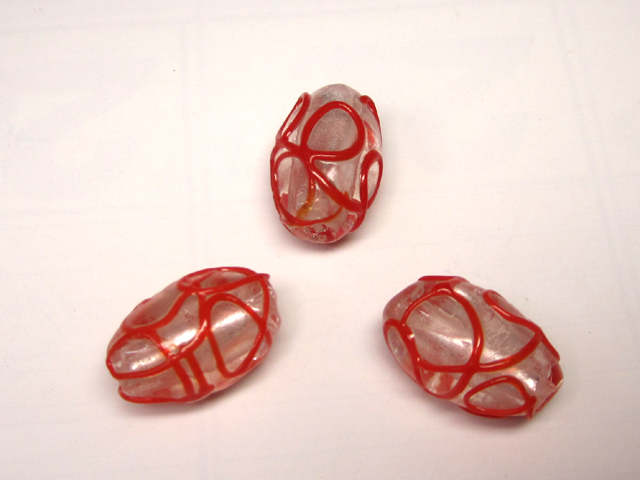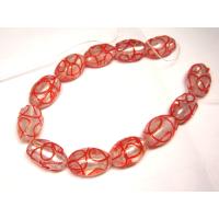 ◆トンボ玉連◆オーバル 箔 立体模様 大 赤 約22×15mm 10粒 06-1392