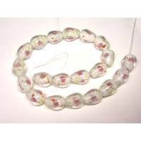 ◆トンボ玉連◆ドロップ 雫 花柄 ホワイト 約15×11mm 19粒 06-1395