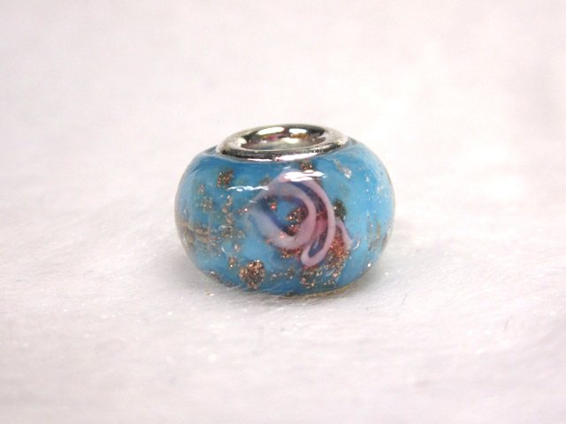大穴◆チャームビーズ◆【1個】 約10×14mm 約5mm穴 花模様 水色 06-1432