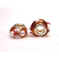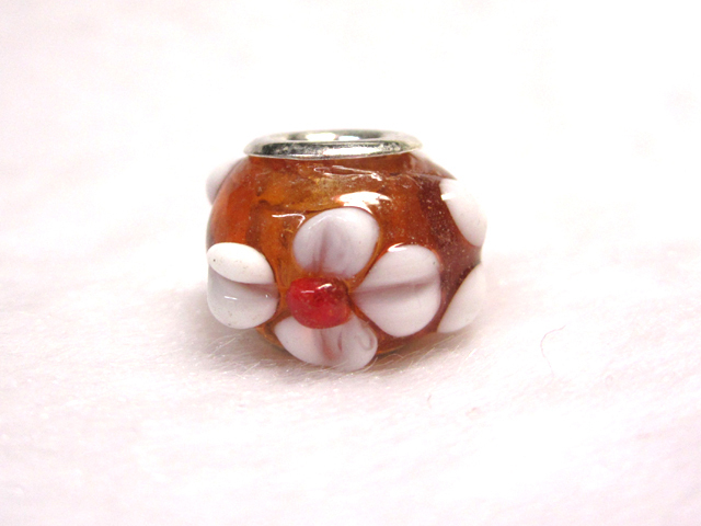 大穴◆チャームビーズ◆【1個】 約10×14mm 約5mm穴 立体花模様 紅茶 06-1437