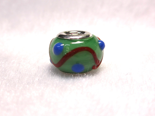 大穴◆チャームビーズ◆【1個】 約10×14mm 約5mm穴 立体波 緑 06-1447