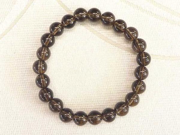 天然石 スモーキークォーツブレスレットラウンド8mm 煙水晶 黒 ブラック グレー 1000027☆