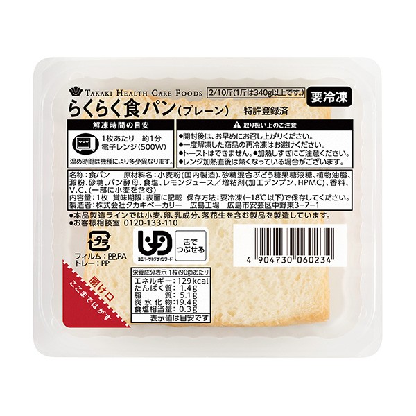 【冷凍】介護食 らくらく食パン (プレーン)90g タカキヘルスケアフーズ