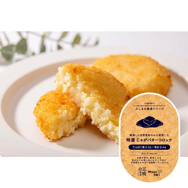 | 【お召し上がり方】 ・オーブントースターの場合(1000W使用時) アルミホイルを敷き冷凍のままのコロッケを並べ、10〜11分ほど加熱し、余熱で5分ほど置いてください。 ・電子レンジの場合(ターンテーブル使用時) 1個…1分15秒/2個…2分 (冷凍のまま・500W) ※使用器具によって調理時間は異なります。 ※ラップはかけずに温めて下さい。 【みしまの厳選シリーズ コロッケ一覧】