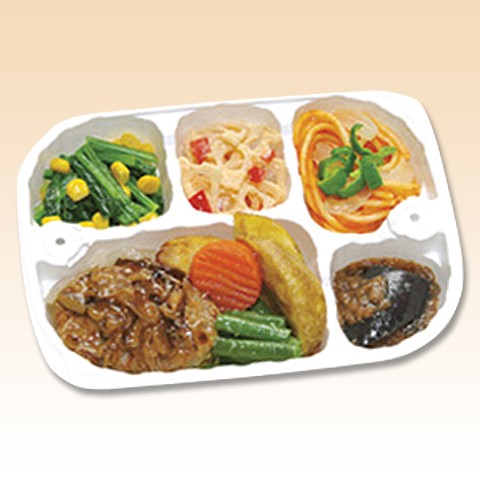 原材料 | たまねぎ、ハンバーグ、ほうれんそう、フライドポテト、れんこん、さやいんげん、でん粉スパゲティ、なすフライ、ピーマン、にんじん、しょうゆ、デキストリン、中鎖脂肪油、ナポリタンソース、えのきたけ、みりん、スイートコーン、植物油、半固体状ドレッシング、かつお節、乾しいたけ、清酒、バター、ごま、砂糖、食塩、粉末状混合調味料、しょうがペースト、にんにくペースト、香辛料、チキンコンソメ、増粘剤(加工デンプン、増粘多糖類)、加工デンプン、調味料(アミノ酸等)、セルロース、着色料(パプリカ粉末、カラメル、ココア、紅花粉、カロチノイド)、乳化剤、香辛料抽出物、酸味料、安定剤(グアーガム)、(原材料の一部に卵、乳成分、小麦、牛肉、豚肉、りんご、ゼラチンを含む) |