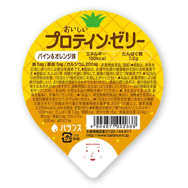 介護食 おいしいプロテインゼリー パイン&オレンジ味 高たんぱくゼリー バランス 74g
