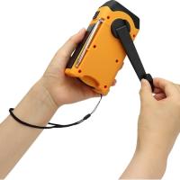 手回し充電式(1分間約120回転の充電)・・・ラジオ:約10分 懐中電灯:約20分 SOSサイレン:約2分