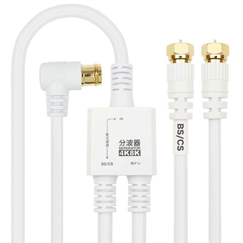 コスパ◎のケーブル一体型4K8K対応分波器<br />■地デジ放送、BS/CS放送をそれぞれ視聴したいときはコレ!<br />