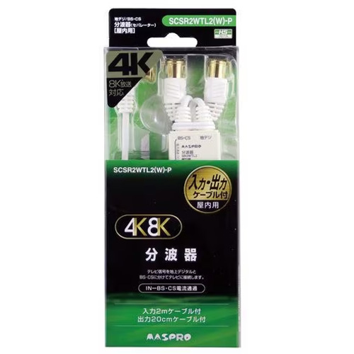 マスプロ電工 MASPRO 4K8K対応 分波器 地デジ BS・CS OUT側プッシュ式プラグ IN側2mケーブル付き SCSR2WTL2 W -P