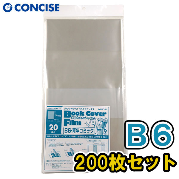 コンサイス 透明ブックカバー 薄手 フィルム B6 青年コミックサイズ 200枚入 お徳用 文庫カバー 透明カバー クリアカバー