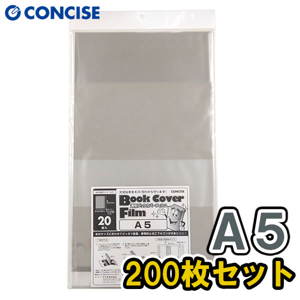コンサイス 透明ブックカバー 薄手 フィルム A5サイズ 200枚入 お徳用 透明カバー クリアカバー