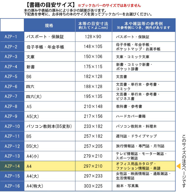 ※使用例には例外がございます。お手持ちの本のサイズを測ったうえで適切なサイズをお選びください。