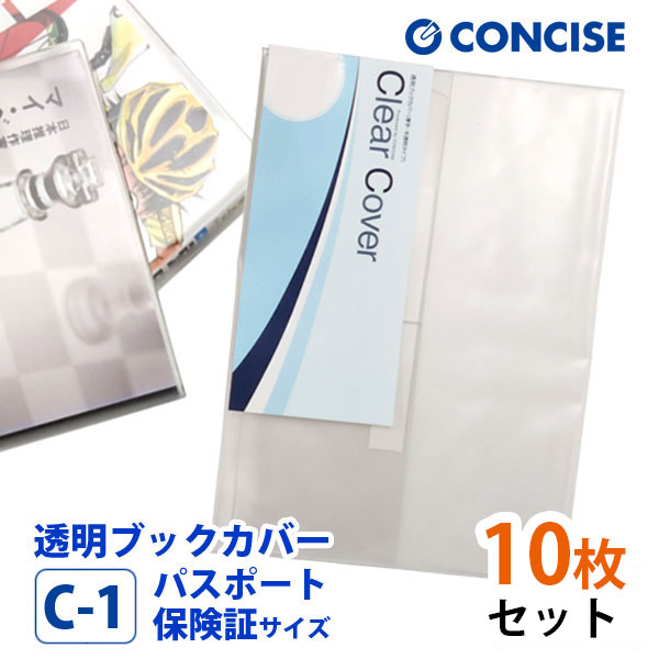 透明ブックカバー 10枚セット パスポート・保険証サイズ 厚手 梨地 C-1 コンサイス クリアカバー 日本製 国産