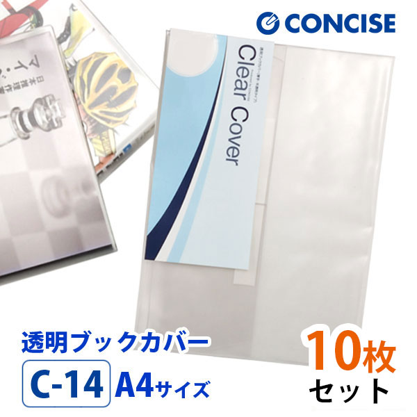 透明ブックカバー 10枚セット A4サイズ 厚手 梨地 C-14 コンサイス クリアカバー 日本製 国産