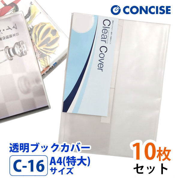 透明ブックカバー 10枚セット A4(特大)サイズ 厚手 梨地 C-16 コンサイス クリアカバー 日本製 国産