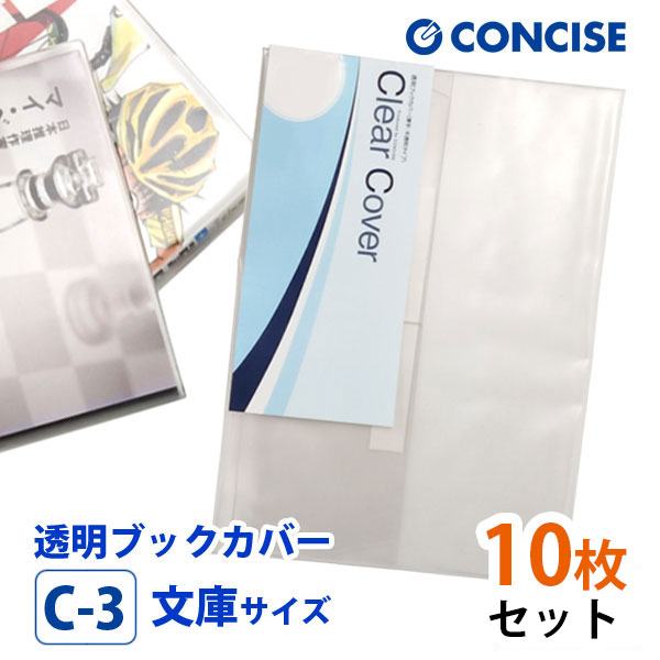 透明ブックカバー 10枚セット 文庫サイズ 厚手 梨地 C-3 コンサイス クリアカバー 日本製 国産