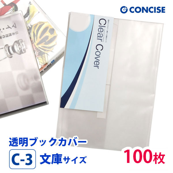 透明ブックカバー 100枚セット 文庫サイズ 厚手 梨地 C-3 コンサイス クリアカバー 日本製 国産 ポリ塩化ビニル