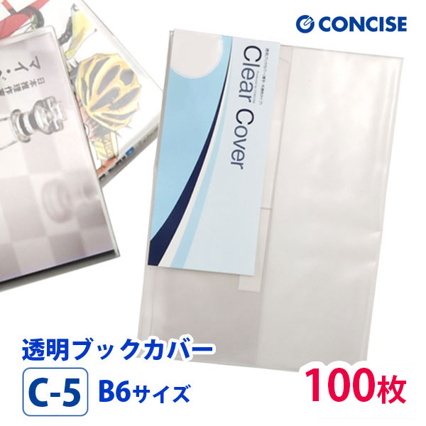 透明ブックカバー 100枚セット B6サイズ 厚手 梨地 C-5 コンサイス クリアカバー 日本製 国産 ポリ塩化ビニル