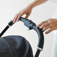 階段やエスカレーターなど、ベビーカーを畳むシーンは数多くありますが、その際に便利なのが持ち運び用のフロントガード。脇に抱えて片手でヒョイ!と持ち上げられるので、手が痛くなりにくく、赤ちゃんを抱っこしたまま片手でも楽に持ち運びができます。