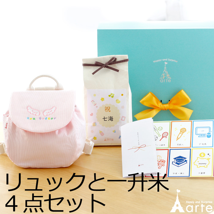 | 商品内容 | 【もち米】×1 約1.5kg 【小分け用袋】×2枚 【ベビーリュック】×1 【選び取りカード10枚】×1 【冊子】×1 【オリジナルギフトBOX】×1 |