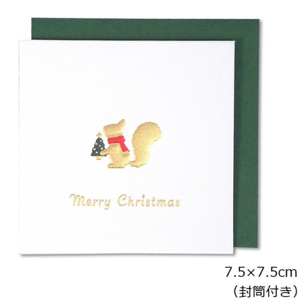 クリスマス ミニカード GX-3821 クリスマスカード 白 【メール便可】 リス クリスマスツリー プレゼント Merry Christmas 緑
