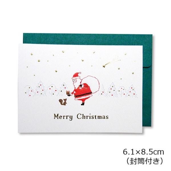 クリスマス ミニカード GX-4033 クリスマスカード 白 【メール便可】 サンタ プレゼント Merry Christmas 緑