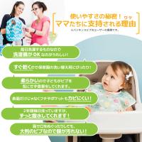 水分の多い離乳食の食べこぼしも、バンキンス社オリジナルの防水加工した生地で下まで浸みこみません。