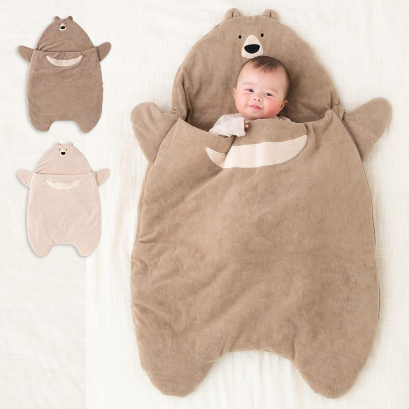 スリーピングバッグ くま ベビー用寝袋 防寒 ベビー布団 赤ちゃん お昼寝布団 スリーパー ブラウン ベージュ