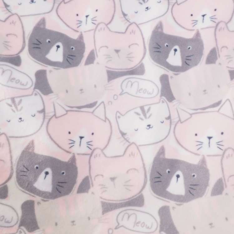 ブランケットにはたくさんのネコがデザインされています。