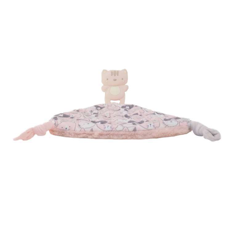 「Chewy=歯ごたえのある」という名前が付けられている通りシリコン製のネコの歯がためが付いたブランケットです。