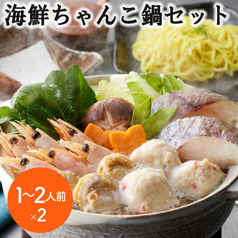 ■規格:個食用 海鮮ちゃんこ鍋セット(助宗鱈切身40g×2切、ボイル海老6g×6尾、ボイル帆立20g×3個、かに入つみれ20g×3個、冷凍生ラーメン80g×1玉、たれ(濃縮:塩)50ml×2袋 ※1~2人前) ×2