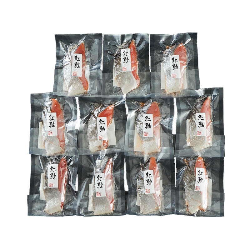 脂がのった人気の紅鮭を一枚ごと個別真空パックにしました。
