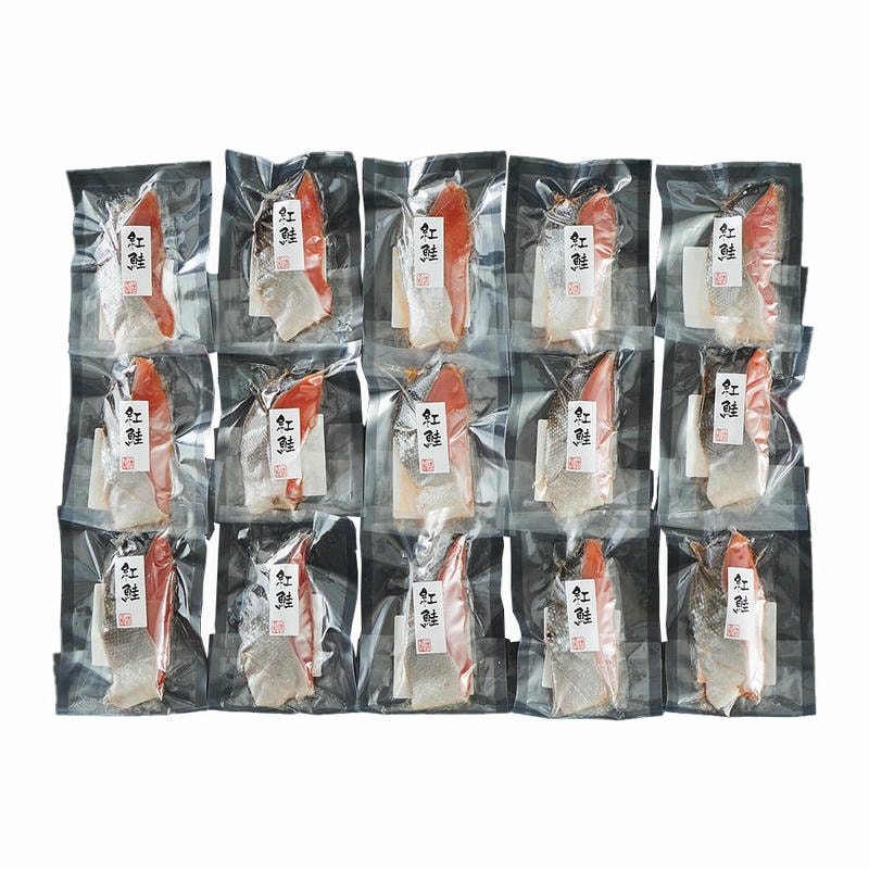 脂がのった人気の紅鮭を一枚ごと個別真空しました。長期の冷凍保存にも便利。お召し上がりになる分だけを冷蔵庫で自然解凍後、焼き魚としてご調理ください。