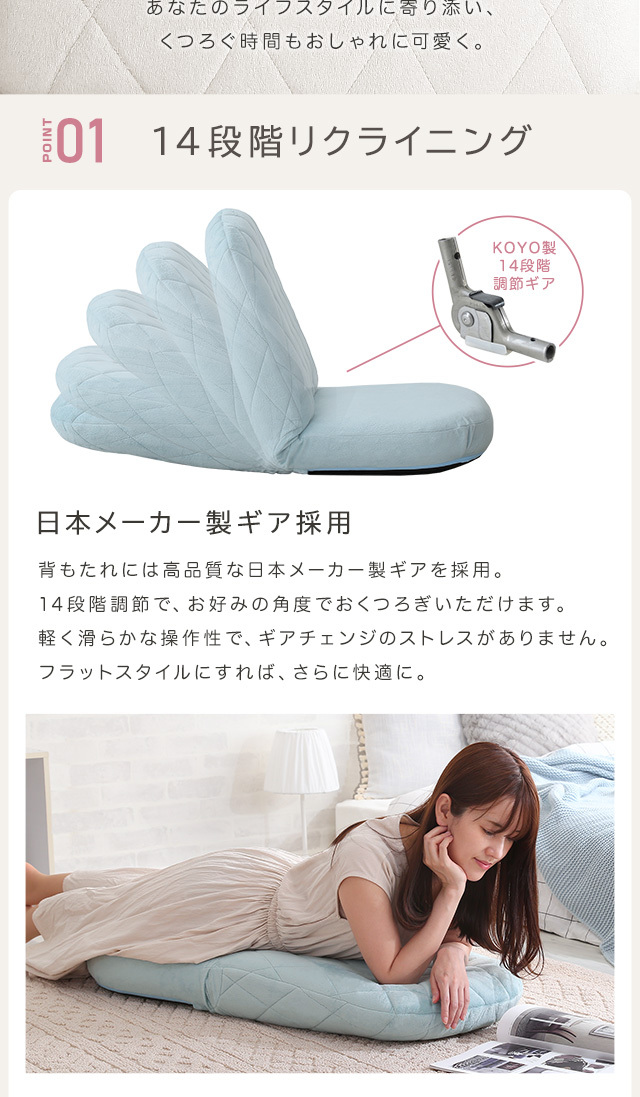 19日までポイント5倍 大人かわいい ダイヤモンド 座椅子 14段階 リクライニング 幅49cm 新生活 引越し 家具