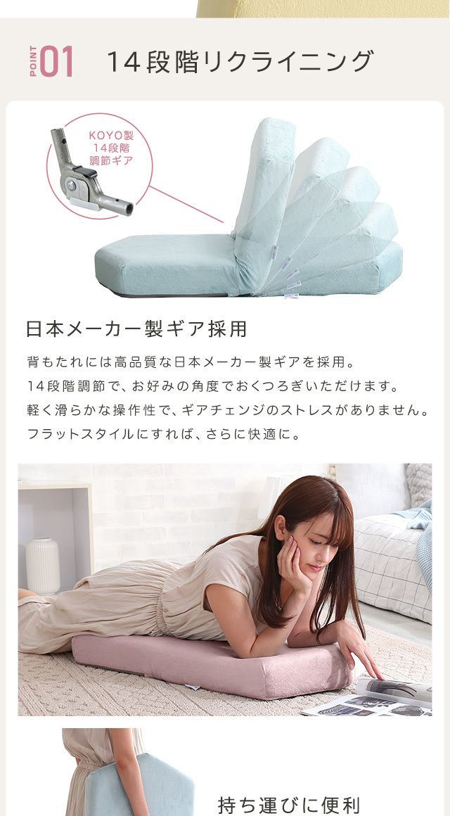 19日までポイント5倍 大人かわいい 三角 座椅子 幅41cm 14段階 リクライニング 新生活 引越し 家具