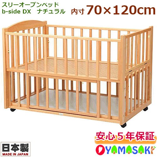 ヤマサキ スリーオープンベッド b-side DX ビーサイドDX ナチュラル 国産 日本製 両側スライド開閉式 足元開閉式 ベビーベッド ベビー家具 送料無料 メーカー5年保証付