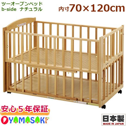 ヤマサキ ツーオープンベッド b-side ビーサイド ナチュラル 国産 日本製 片側スライド開閉式 足元開閉式 ベビーベッド ベビー家具 送料無料 メーカー5年保証付 赤ちゃんベッド