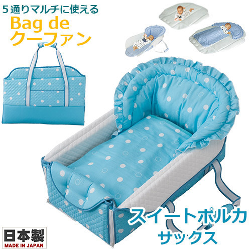 フジキ Bag de クーファン 4重ガーゼケット付 スイートポルカ サックス 日本製 バッグdeクーファン バッグでクーファン クーハン おでかけ おむつ替え お昼寝マット プレイマット バッグ ベビー