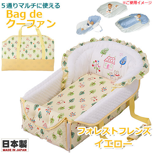 フジキ Bag de クーファン フォレストフレンズ イエロー 4重ガーゼケット付 日本製 バッグdeクーファン バッグでクーファン クーハン おでかけ おむつ替え お昼寝マット プレイマット バッグ ベビー