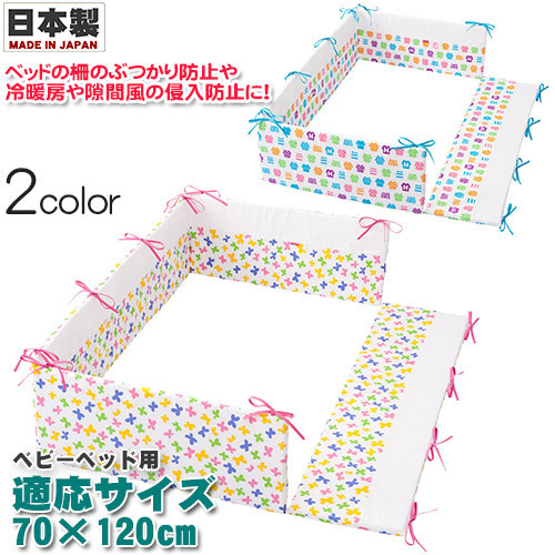 隙間風や冷暖房の風から赤ちゃんを守ったり、ベッドの柵などに頭や足がぶつかるのを守ったりと重宝するベッドパットです。