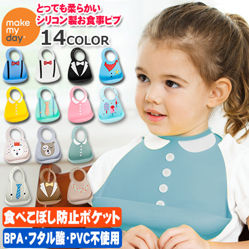 シリコンビブ 男の子 女の子 ビブ エプロン 食べこぼし防止 防水加工 食洗機可 お食事 結婚式 通園/園児 贈り物 ギフト ベビー/キッズ make my day メイクマイデイ 正規品