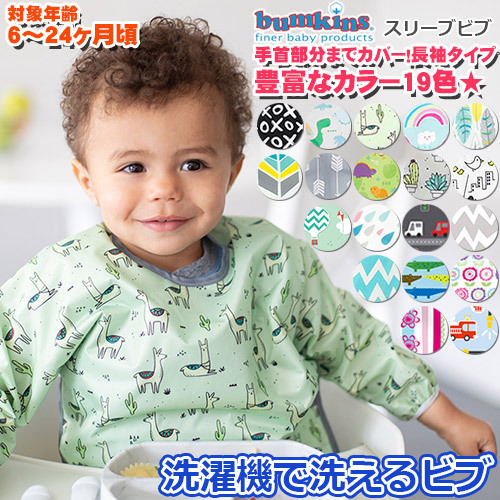 全13色 bumkins バンキンス スリーブビブ 男の子 女の子 ビブ エプロン 食べこぼし防止 防水加工 洗濯機可 お食事 通園 ベビー キッズ 正規品