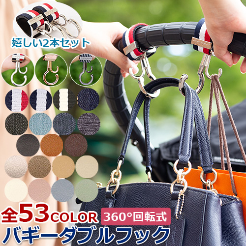 360°回転するのでどの向きからも荷物が掛けられ、ちょっとした買い物袋も掛けられるダブルフック仕様。金属でできたフック部分は高級感があり強度も抜群!旅行のキャリーケースや自転車、車のヘッドレス等につけて収納小物としても活躍してくれます。ベビーカーを選ばないのでどのハンドルにも簡単に取り付けられます!ヽ(・∀・)ノ♪●ブランド:e.x.p.japon イー・エクス・ピー・ジャポン(イーエクスピージャポン)
