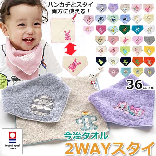 2WAYスタイ ハンカチ&スタイ タオル生地 綿100% アップリケ刺繍 今治タオル 日本製 36色