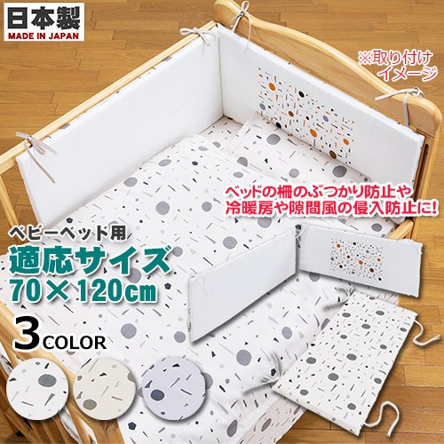 隙間風や冷暖房の風から赤ちゃんを守ったり、ベッドの柵などに頭や足がぶつかるのを守ったりと重宝するベッドパットです。