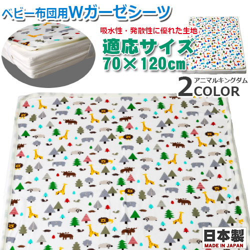 2020年新柄 Wガーゼシーツ アニマルキングダム アニマル柄 動物柄 ガーゼシーツ 汗取り効果 ベビー布団 ベビーベッド ベビー用 4隅ゴム付き 70×120cm レギュラーサイズ 通園 保育園 日本製 フジキ
